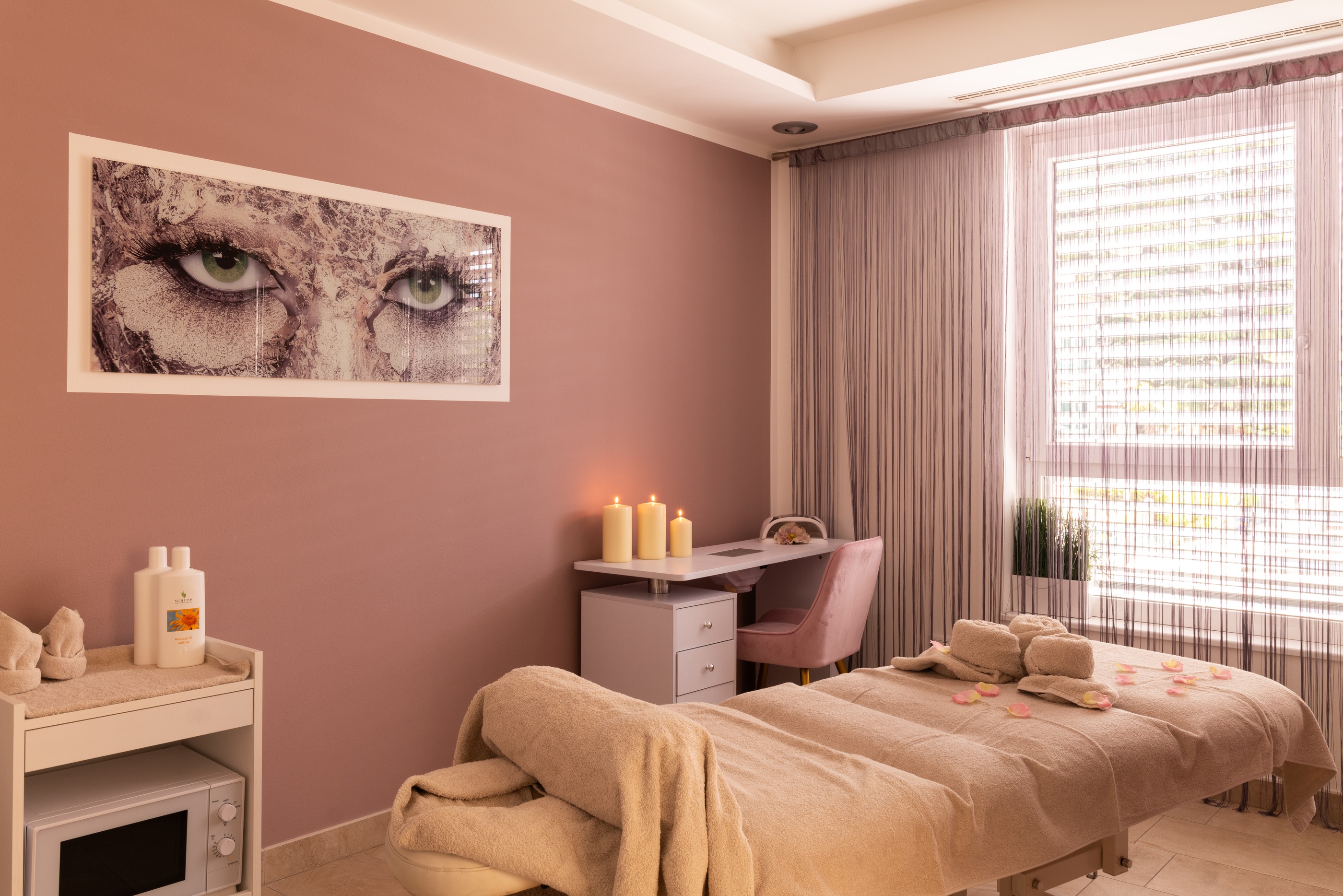 Entspannen Sie in der hauseigenen Wellness-Oase mit finnischer Sauna, Dampfbad, Whirlpool auf der Sonnenterrasse und wohltuenden Massagebehandlungen.